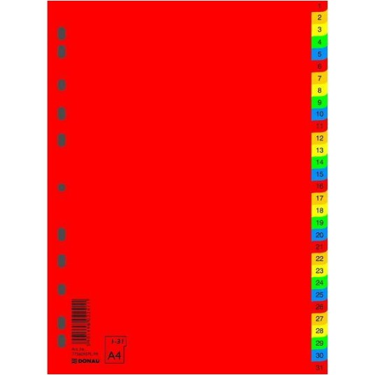 PRZEKŁADKI DO SEGREGATORA A4/10 1-31 DONAU PP (MIX KOLORÓW)