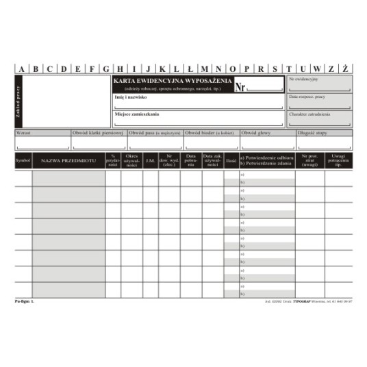 • Nazwa: Karty ewidencji wyposażenia