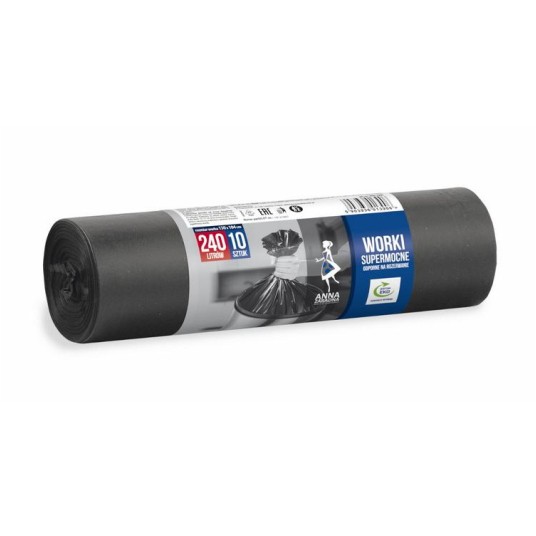 WORKI NA ŚMIECI SUPERMOCNE 240 L ANNA ZARADNA (10 SZTUK) (CZARNE)