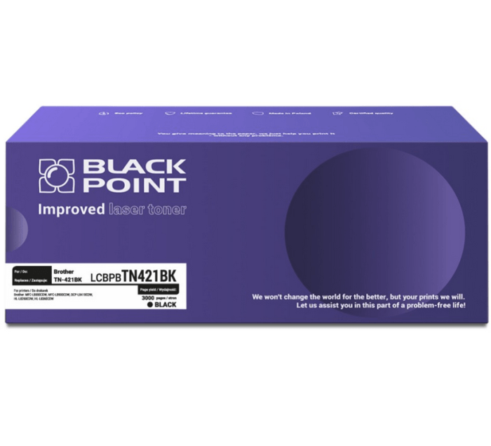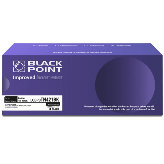 Toner Black Point TN-421BK to ekonomiczne i sprawdzone rozwiązanie dla użytkowników oczekujących wysokiej jakości wydruków oraz niezawodnej pracy drukarki Brother.