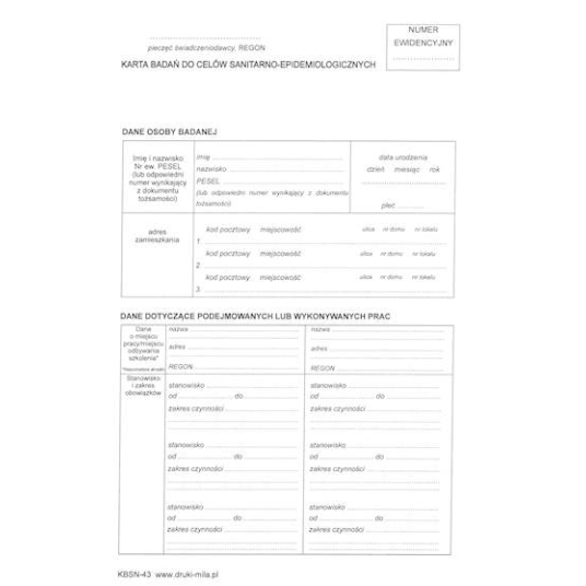 ✅ Wyraźne rubryki ułatwiające wypełnianie danych pacjenta i wyników badań