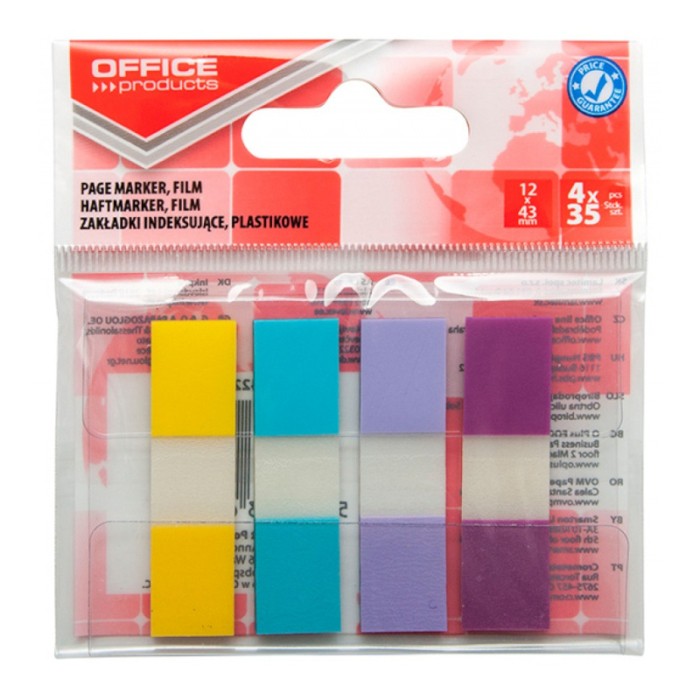 ZAKŁADKI INDEKSUJĄCE OFFICE PRODUCTS PP 12x43mm (4 KOLORY PO 35 SZTUK)