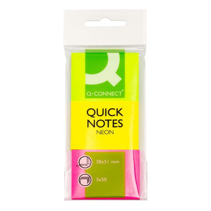 Samoprzylepne karteczki Q-CONNECT 38×51 mm NEON to wygodne narzędzie do krótkich notatek, zaznaczania i kolorowego kodowania informacji w pracy, szkole i domu. Intensywne, neonowe barwy podnoszą widoczność komunikatów na dokumentach, segregatorach i tablicach. Klej pozwala na kilkukrotne przeklejanie na gładkich powierzchniach, a w razie potrzeby można go usunąć wodą. Papier o gramaturze 70 g/m² zapewnia czytelny zapis długopisem i ołówkiem oraz dobrą sztywność kartki. Kompaktowy format 38×51 mm mieści hasła, numery zadań i znaczniki stron bez zasłaniania treści. Zestaw 3×50 arkuszy ułatwia organizację zadań i priorytetów w różnych miejscach pracy. Produkt posiada certyfikat FSC, co potwierdza odpowiedzialne źródło surowca.