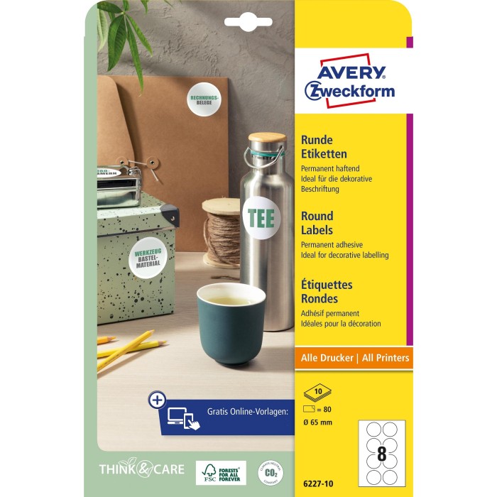 Avery Zweckform jest głównie rozpoznawane jako producent etykiet samoprzylepnych i jest to największa grupa produktowa, ale nie jedyna. Marka Avery Zweckfom oferuje również inne rozwiązania z kategorii biurowo-papierniczej, mając w swojej ofercie chociażby wizytówki biznesowe; identyfikatory imienne i konferencyjne; papiery uniwersalne i specjalistyczne oraz folie.