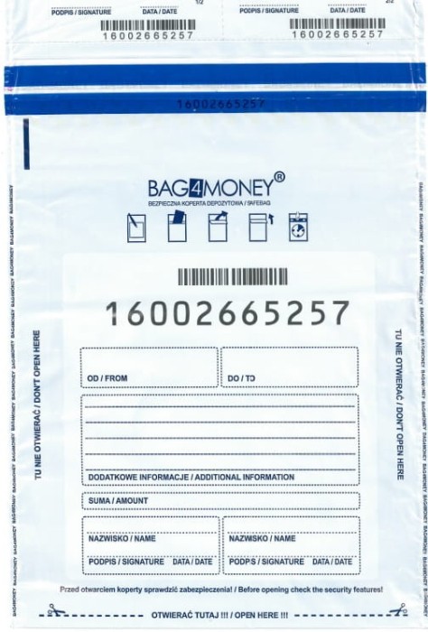 Profesjonalne koperty depozytowe w formacie B4, wykonane z wytrzymałej, trójwarstwowej folii LDPE. Przeznaczone do bezpiecznego transportu dokumentów, gotówki lub innych cennych przedmiotów. Dzięki zaawansowanym zabezpieczeniom minimalizują ryzyko manipulacji i zapewniają kontrolę nad przesyłką.