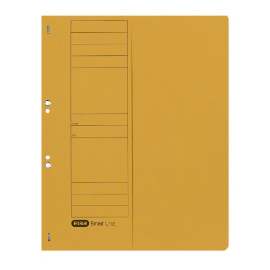 Skoroszyt A4 wykonany z żółtego kartonu Manilla barwionego w masie. Frontowa okładka została zmniejszona o połowę, dzięki czemu dokumenty są widoczne bez otwierania skoroszytu. Uniwersalny zaczep oczkowy pozwala na wpięcie skoroszytu do każdego segregatora. Specjalne bigowanie na grzbiecie umożliwia jego poszerzenie dla zwiększenia pojemności.