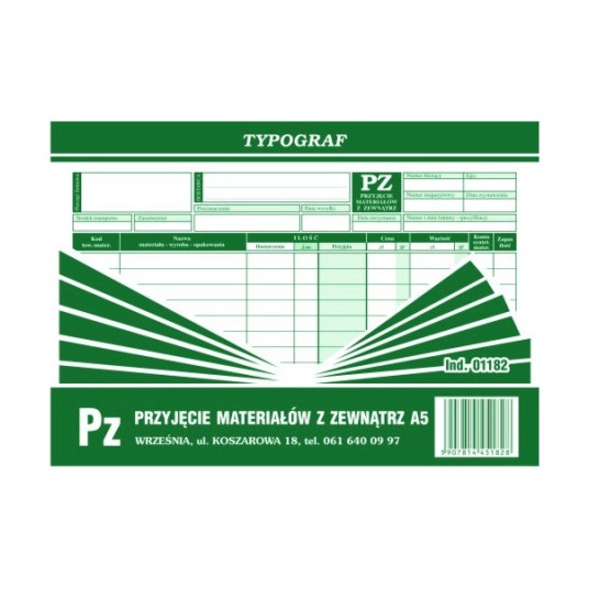 DRUK PZ PRZYJĘCIE MATERIAŁÓW Z ZEWNĄTRZ (A5)