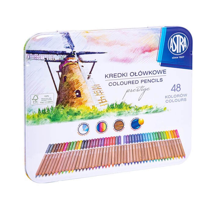 KREDKI OŁÓWKOWE ASTRA Z DREWNA CEDROWEGO W METALOWYM PUDEŁKU (48 KOLORÓW)