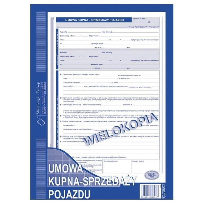 ✅ Umowa kupna-sprzedaży pojazdu