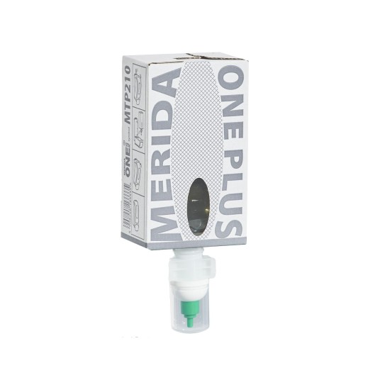 Wkład mydła w pianie MERIDA ONE 700 g (róża/miód/wanilia) to jednorazowy kartridż z pompką spieniającą do dozowników DEB202 i DEC202. Delikatna piana skutecznie myje dłonie, a zawarta gliceryna wspiera nawilżenie skóry i komfort codziennego użytkowania. Szczelnie zamknięty wkład chroni zawartość przed skażeniem, zapewniając higieniczne i powtarzalne dozowanie. Wysoka wydajność do ok. 2200 porcji z jednego opakowania ogranicza częstotliwość wymian i przestoje serwisowe. Piana łatwo się spłukuje, co skraca czas mycia rąk i zmniejsza zużycie wody. Łagodny, przyjemny zapach (róża, miód, wanilia) podnosi komfort w łazienkach biurowych, edukacyjnych czy HoReCa. Opakowanie nadaje się w 100% do recyklingu.