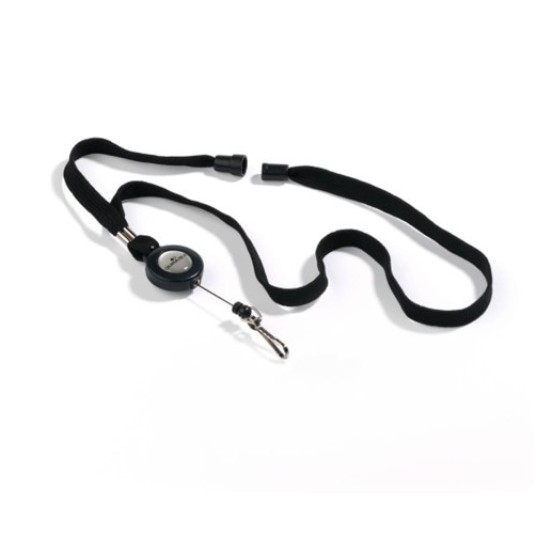 Umocowany na taśmie mechanizm ściągający zakończony karabińczykiem, może być stosowany ze wszystkimi identyfikatorami DURABLE, które zaopatrzone są w owtór na klips. Bezpieczeństwo zapewnia specjalny zamek, który otworzy się w przypadku gwałtownego pociągnięcia.