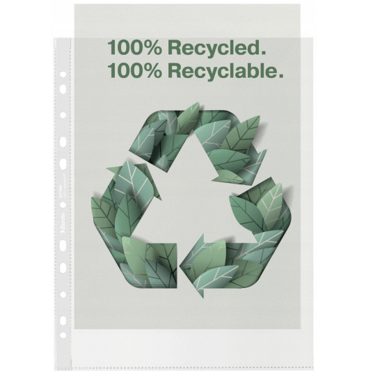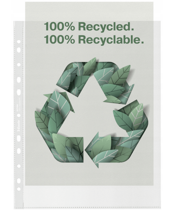 Ekologiczne koszulki na dokumenty w formacie A4 MAXI, do codziennego użytku, wykonane z bardzo mocnego polipropylenu pochodzącego w 100% z tworzywa sztucznego pochodzącego z recyklingu (skrawki/odpady przemysłowe lub pozostałości poprodukcyjne; testowane zewnętrznie przez UL). Z perforowanym paskiem umożliwiającym wygodne przechowywanie w segregatorach z mechanizmem dźwigniowym oraz ringowych. Mieszczą do 80 kartek A4, więcej niż standardowe koszulki na dokumenty. Mogą być wielokrotnie używane, w całości nadają się do recyklingu. Opakowanie wykonane jest z kartonu, który również w 100% pochodzi z recyklingu i nadaje się do ponownego przetworzenia. Wyprodukowane w Europie.
