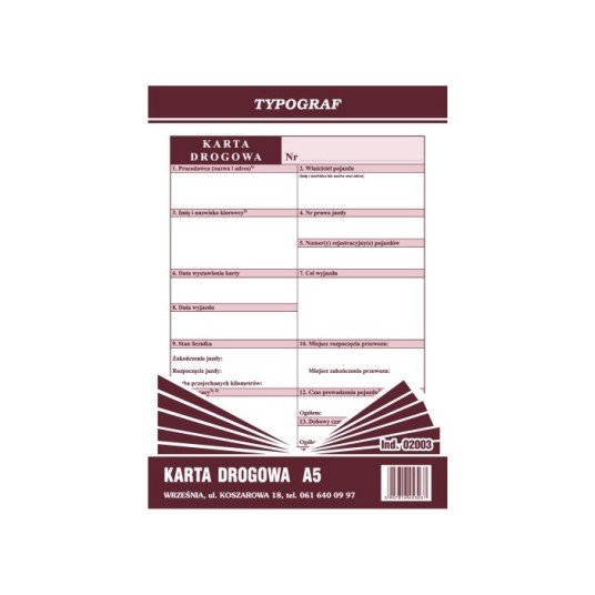 Druk- Karta drogowa rozli. czasu pracy TYPOGRAF