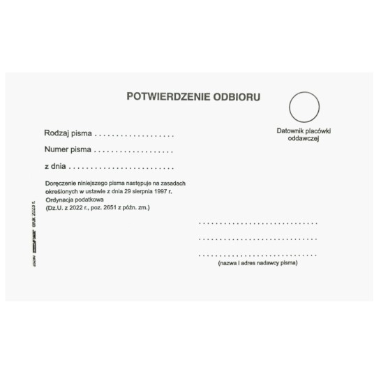 ZWROTNE POTWIERDZENIE ODBIORU ORDYNACJI PODATKOWEJ (100 SZTUK)