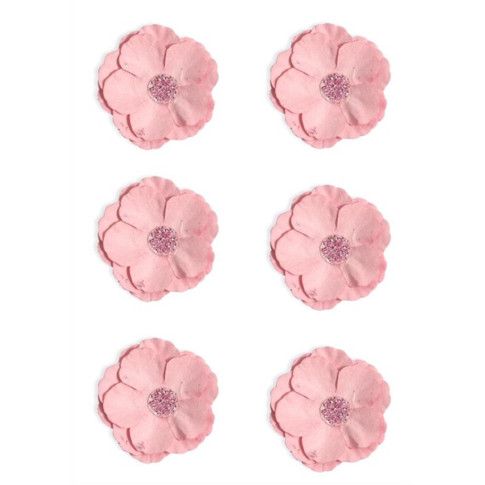 Dekoracyjne samoprzylepne kwiaty clematis służące do ozdabiania kartek okolicznościowych, pudełek i torebek na prezenty, produktów oprawy ślubnej oraz produktów do wystroju wnętrza.