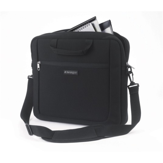 Pokrowiec Kensington SP15 Simply Portable zapewnia ochronę laptopa, ultrabooka lub Chromebooka. Ma wyściełane miękką tkaniną wnętrze i wygodne uchwyty do przenoszenia. Zewnętrzne i wewnętrzne kieszenie zapewniają odpowiednią ilość miejsca na akcesoria i dokumenty.