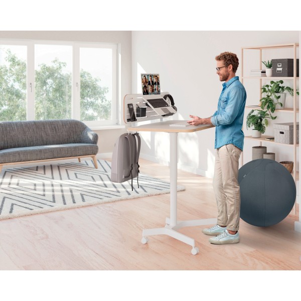Piłka do aktywnego siedzenia Leitz, z zabezpieczeniem przed niekontrolowanym toczeniem się, aktywizuje mięśnie pleców i kręgosłupa, co przyczynia się do poprawy postawy i łagodzenia bólu pleców. Idealnie sprawdza się jako dodatkowe miejsce do siedzenia, które pozwoli Ci zachować aktywność podczas pracy. Posiada certyfikat IGR i TÜV. Piłka do siedzenia o średnicy 65 cm przeznaczona jest dla osób o wzroście od 156 do 180 cm. Posiada zabezpieczenie antypoślizgowe, które zapobiega przesuwaniu się piłki podczas wstawania i umożliwia jej bezpieczne przechowywanie. Ta efektowne, zaprojektowana w minimalistycznym stylu piłką do aktywnego siedzenia może mieć pozytywny wpływ na Twoje samopoczucie - w prosty sposób stworzysz perfekcyjne stanowisko, które pozwoli Ci zachować aktywność w czasie pracy. Sprawdź, czy piłka jest napompowana zgodnie z instrukcją, a potem zmieniaj miejsce do siedzenia co 30 minut, siadając naprzemiennie na piłce i na krześle. Dzięki temu produktowi stworzysz przyjazne i elastyczne miejsce pracy, które pomoże Ci zachować aktywność i produktywność przez cały dzień.
