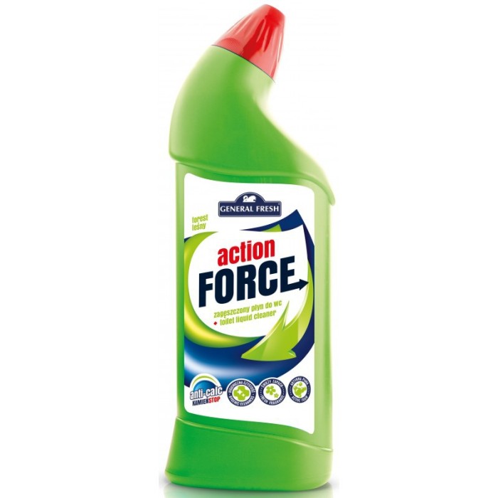 Skuteczny płyn do WC General Fresh Action Force o zapachu lasu to doskonałe rozwiązanie do codziennej higieny toalety. Dzięki specjalnej formule usuwa brud, rdzę i kamień nawet poniżej linii wody – bez konieczności szorowania. Idealny do trudno dostępnych miejsc, gdzie gromadzą się bakterie i osady.
