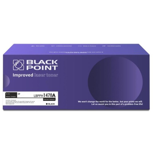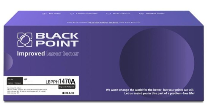 Profesjonalny zamiennik tonera HP W1470A marki Black Point, przeznaczony do wydajnych drukarek laserowych HP z serii Enterprise. Zapewnia wysoką jakość wydruków, niezawodną pracę w środowisku biurowym oraz bardzo dużą wydajność, idealną do intensywnej eksploatacji.
