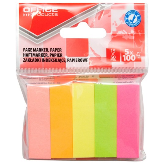 Papierowe zakładki indeksujące OFFICE PRODUCT w rozmiarze 15×50 mm ułatwiają szybkie zaznaczanie stron, rozdziałów i kluczowych fragmentów dokumentów. Neonowy mix kolorów poprawia widoczność i pozwala łatwo kategoryzować notatki. Samoprzylepny pasek z klejem usuwalnym wodą trzyma się pewnie, a jednocześnie umożliwia bezpieczne odklejenie bez uszkadzania papieru. Na zakładkach można pisać, co przyspiesza opisy i tworzenie własnych systemów indeksowania. Matowa, papierowa powierzchnia nie odbija światła i jest przyjazna dla długopisu czy ołówka. Jedno opakowanie zawiera 5×100 sztuk, co zapewnia wygodny zapas do biura, szkoły i domu. Zakładki są wielorazowego użytku i pomagają utrzymać porządek w dokumentacji.