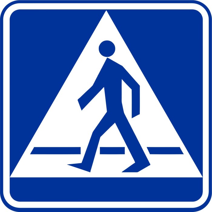 • Uniwersalny symbol: Graficzne przedstawienie osoby przechodzącej po pasach — rozpoznawalny znak zgodny z normami BHP.