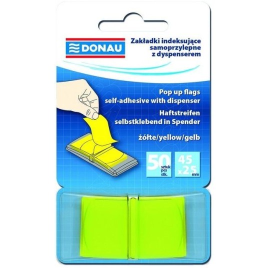 ZAKŁADKI INDEKSUJĄCE PP DONAU 25 X 45 MM (50 KARTEK) ŻÓŁTE